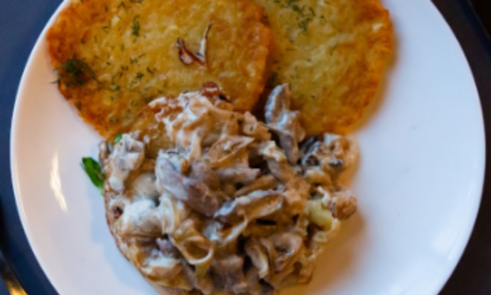 Деруни з вершково-грибним соусом